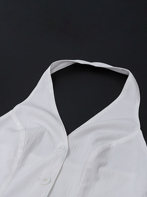 Top: Halter Neck, Sleeveless, Button-down Front, V-Neck, Backless